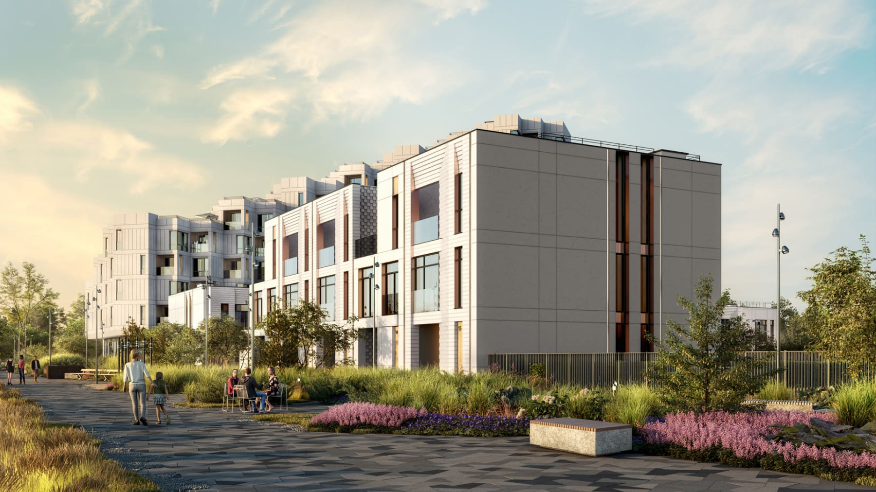 Проект состоит из башен разной высотности с современным обликом. Линию возле берега Москвы-реки занимают дома-тетрисы, в которых расположатся квартиры с террасами. Для желающих иметь отдельное жилье внутри квартала, рядом с зелеными зонами, построят таунхаусы высотой в 3 этажа и собственными закрытыми дворами.