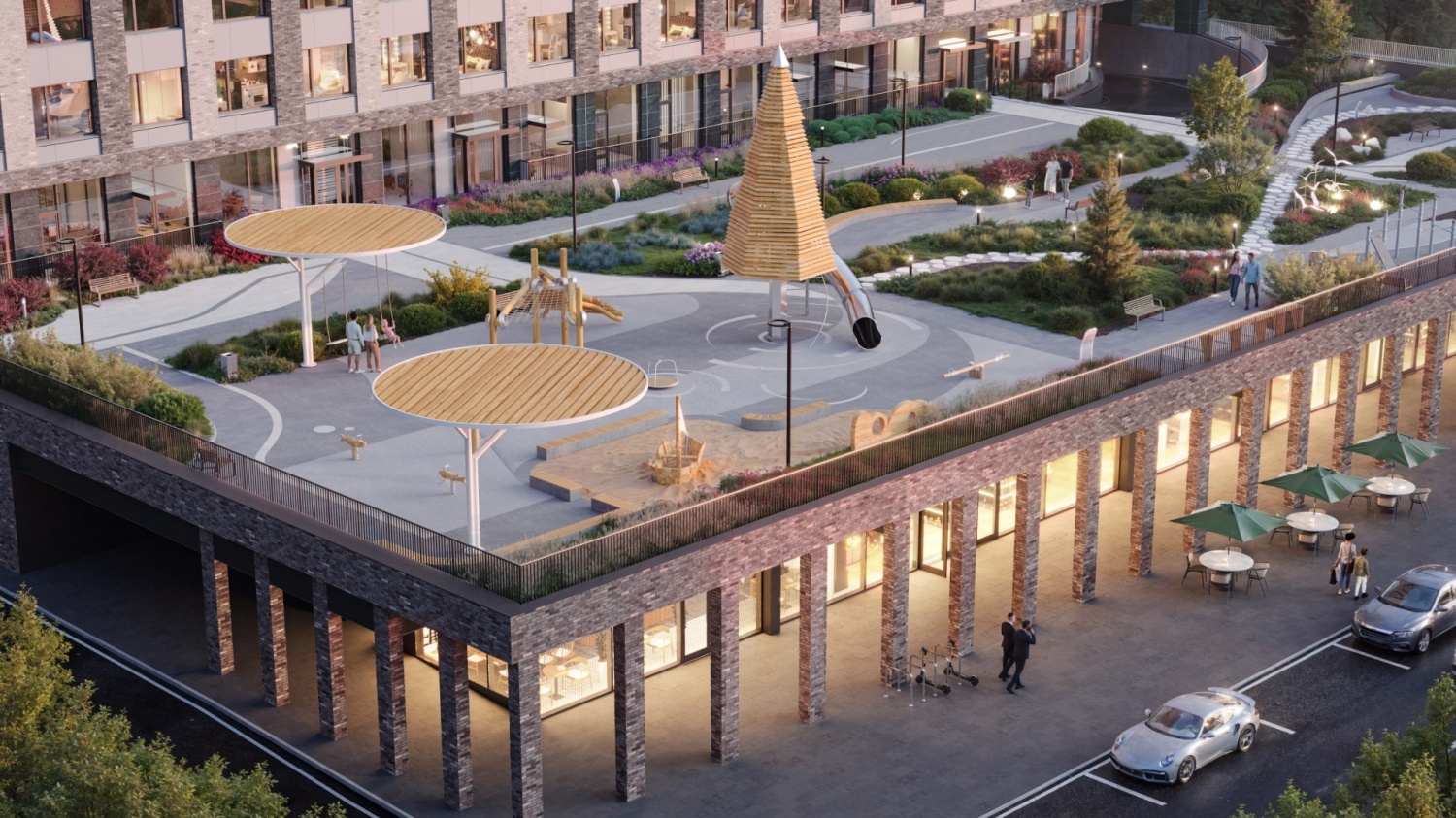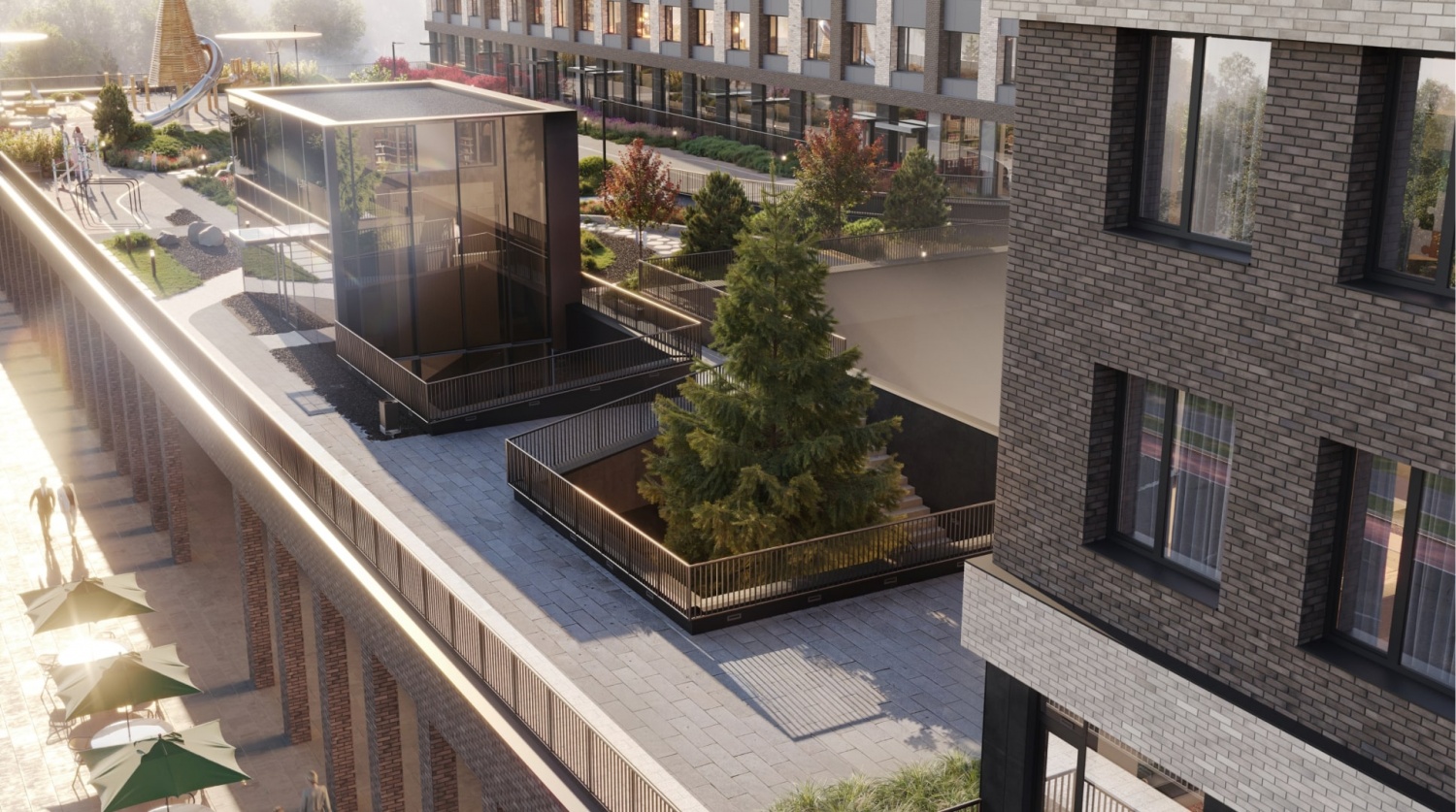 - Квартиры с выходом на уровень благоустройства в стилобате