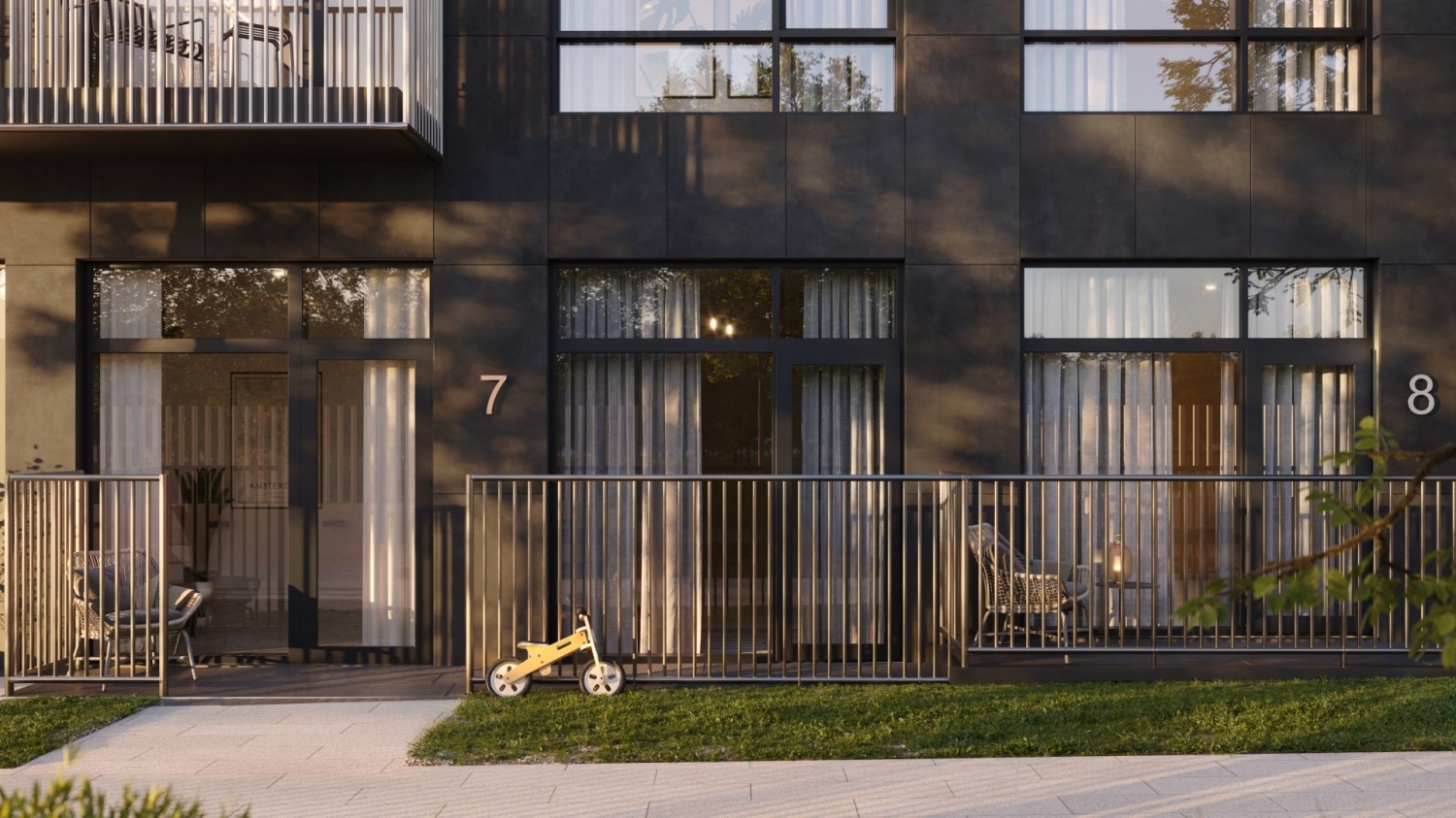 - Квартиры с отдельными входами с уровня земли;