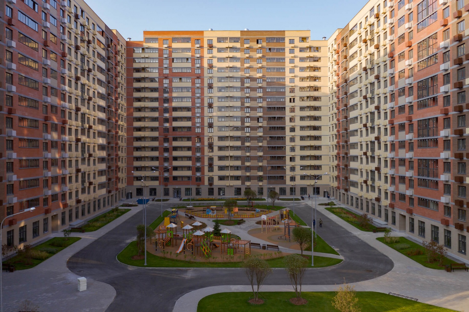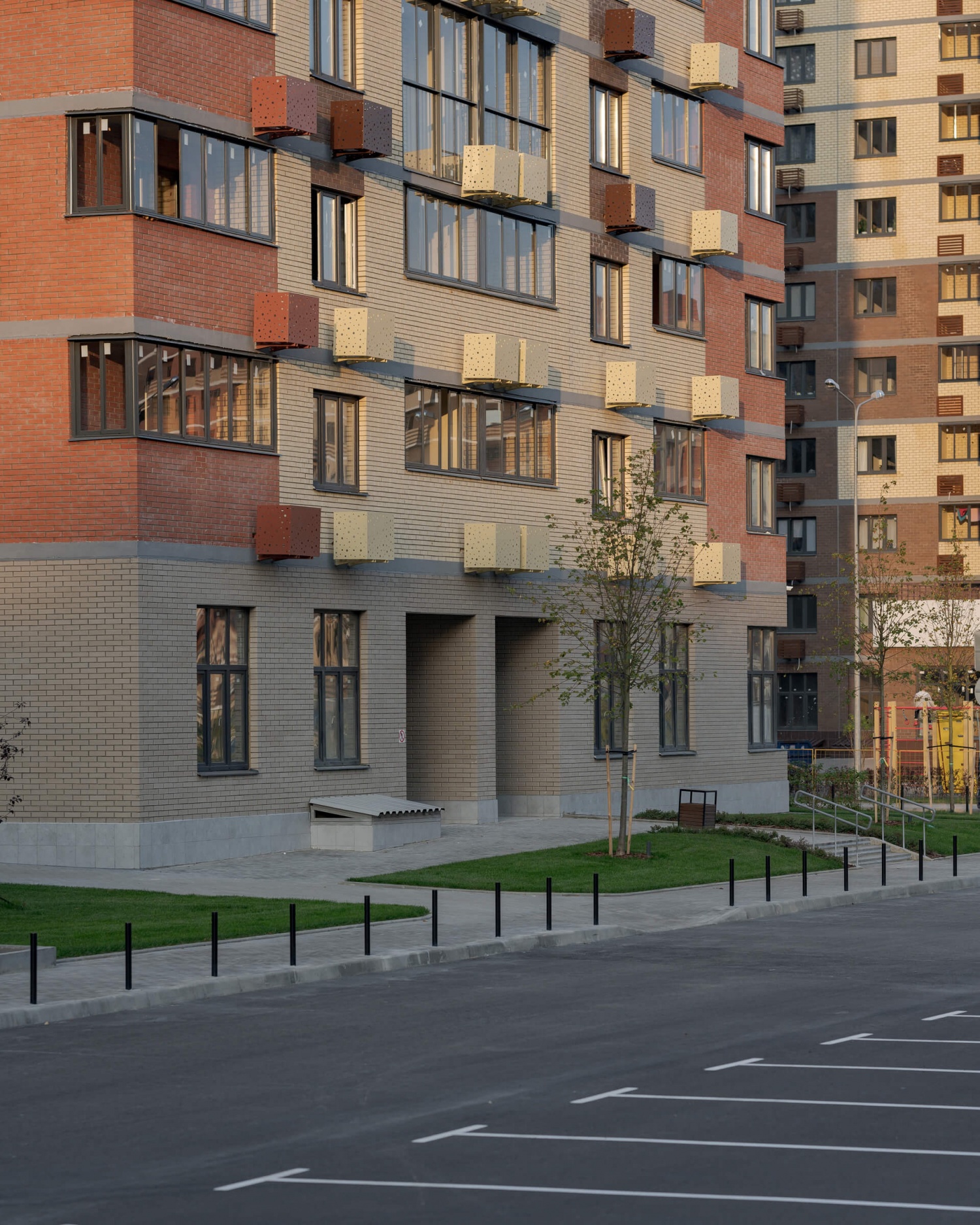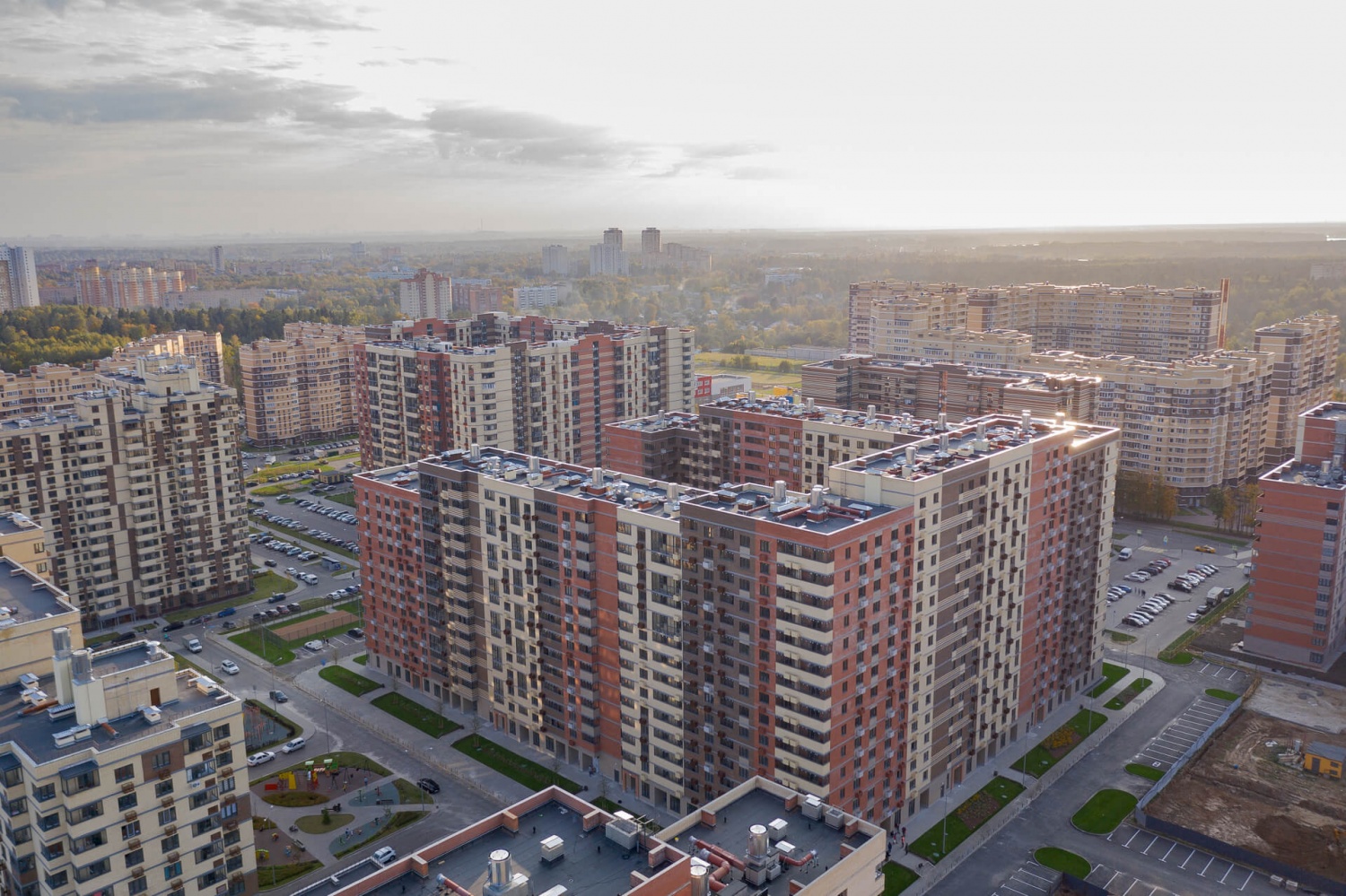 На территории микрорайона возводятся кирпично-монолитные дома переменной этажности – от 6 до 17 этажей. Дома выполнены в бежево-шоколадной гамме. В домах запроектированы квартиры-студии, 1, 2 и 3-комнатные квартиры площадью от 28 до 73 кв. м. В большинстве квартир имеется остекленный балкон, однако в некоторых квартирах балкона нет. Все квартиры передаются покупателям без отделки.