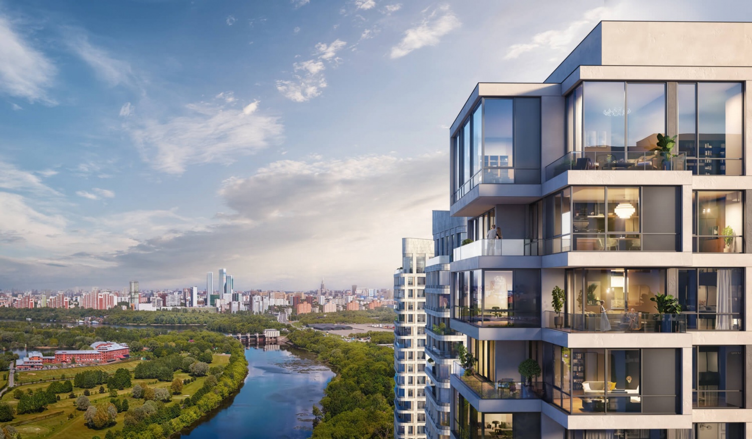 В корпусах расположены студии, 5-комнатные квартиры, пентхаусы. Есть эксклюзивные планировки, допускающие наличие камина, террасы, различных видов остекления. Ряд корпусов и секций создан в соответствии с уникальными авторскими проектами.