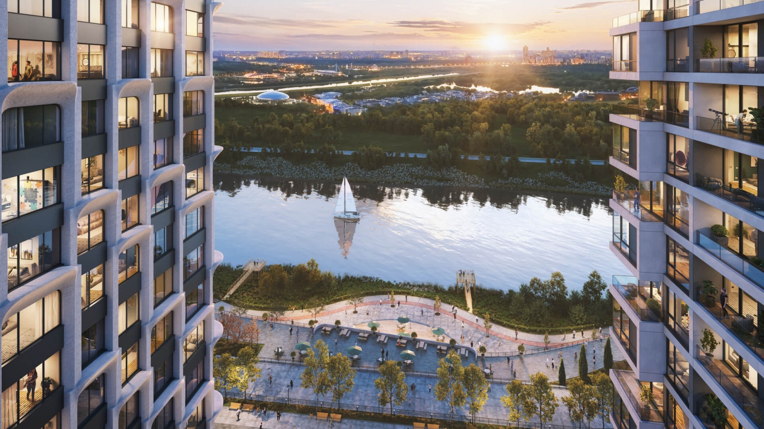 ЖК «Остров» основан на концепции «15-минутного города». Из любой его точки вы быстро дойдете до магазинов, банков, кафе, аптек, учебных заведений. Здесь функционируют многочисленные спортивные объекты, гольф-клуб, Гребной канал.