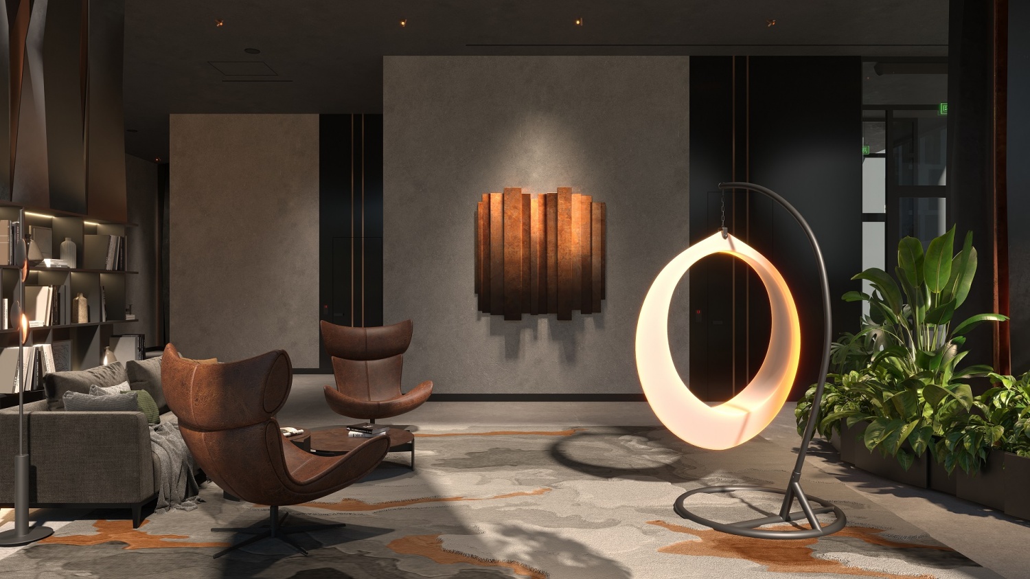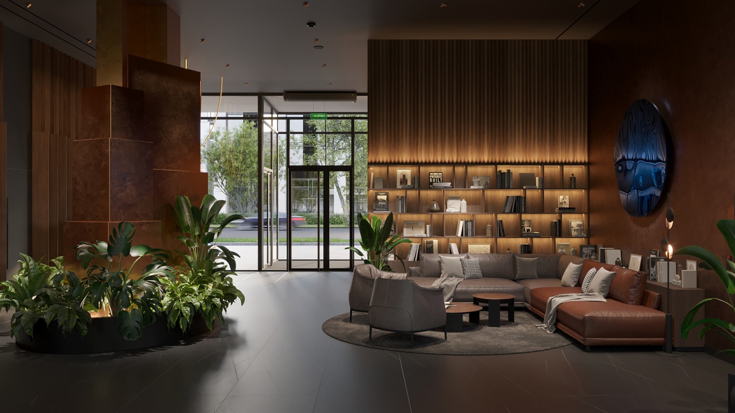 На первых этажах резидентов и гостей встретят просторные лобби площадью от 204 м² с потолками - до 5 м. Дизайн лобби разработан бюро Sundukovy Sisters, которое знаменито своими работами для премиальных отелей и ресторанов по всей планете.