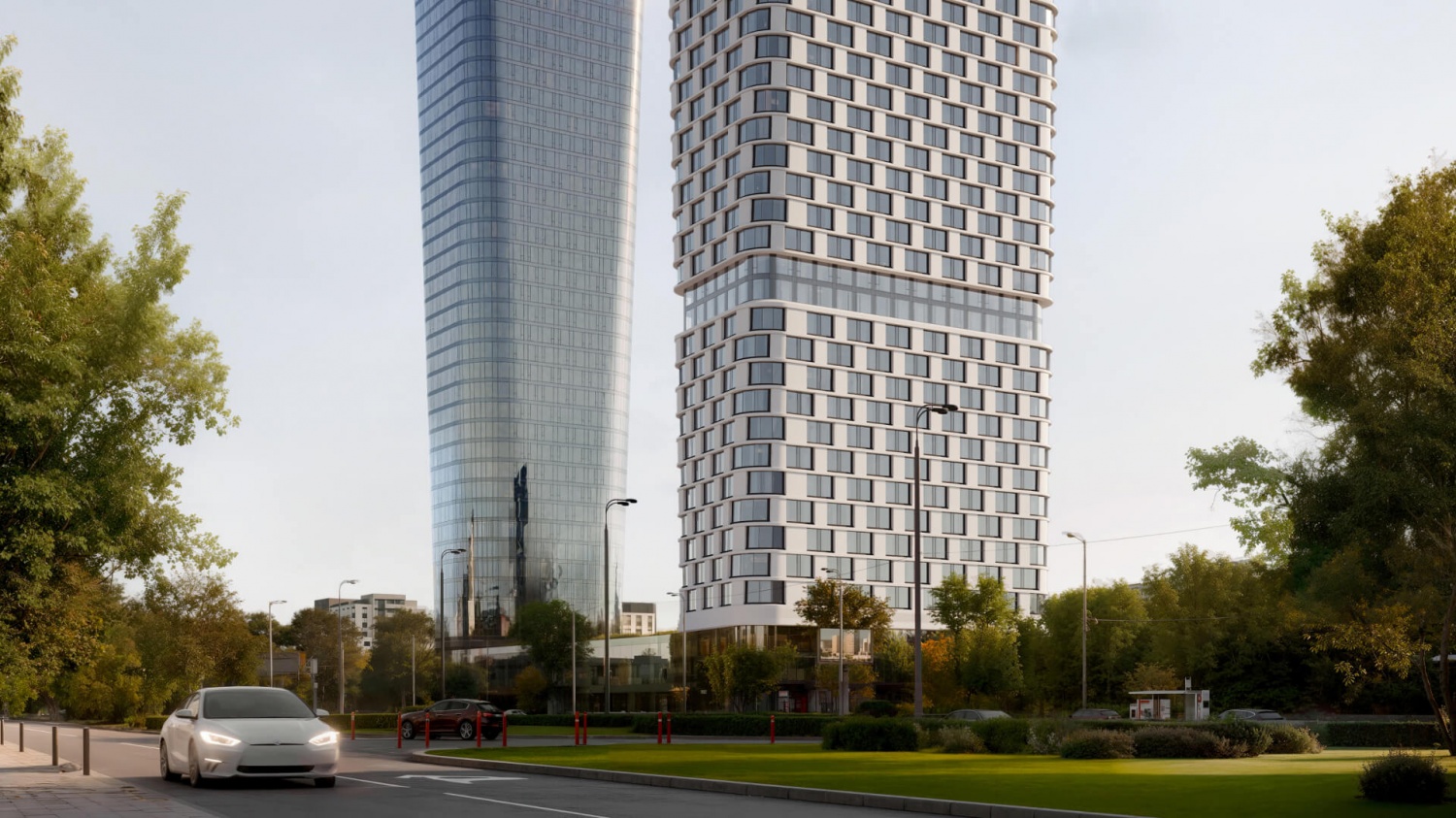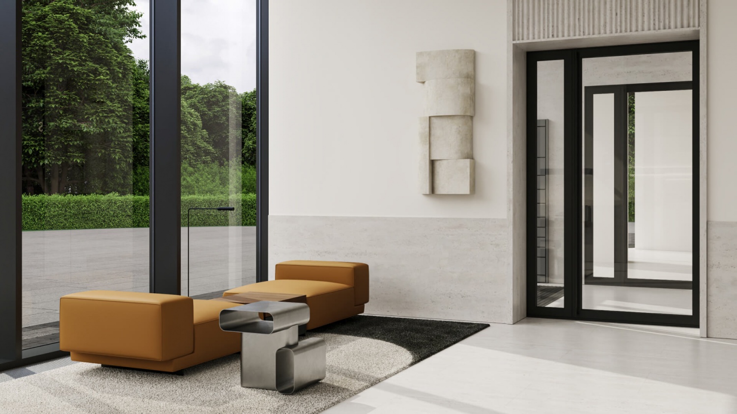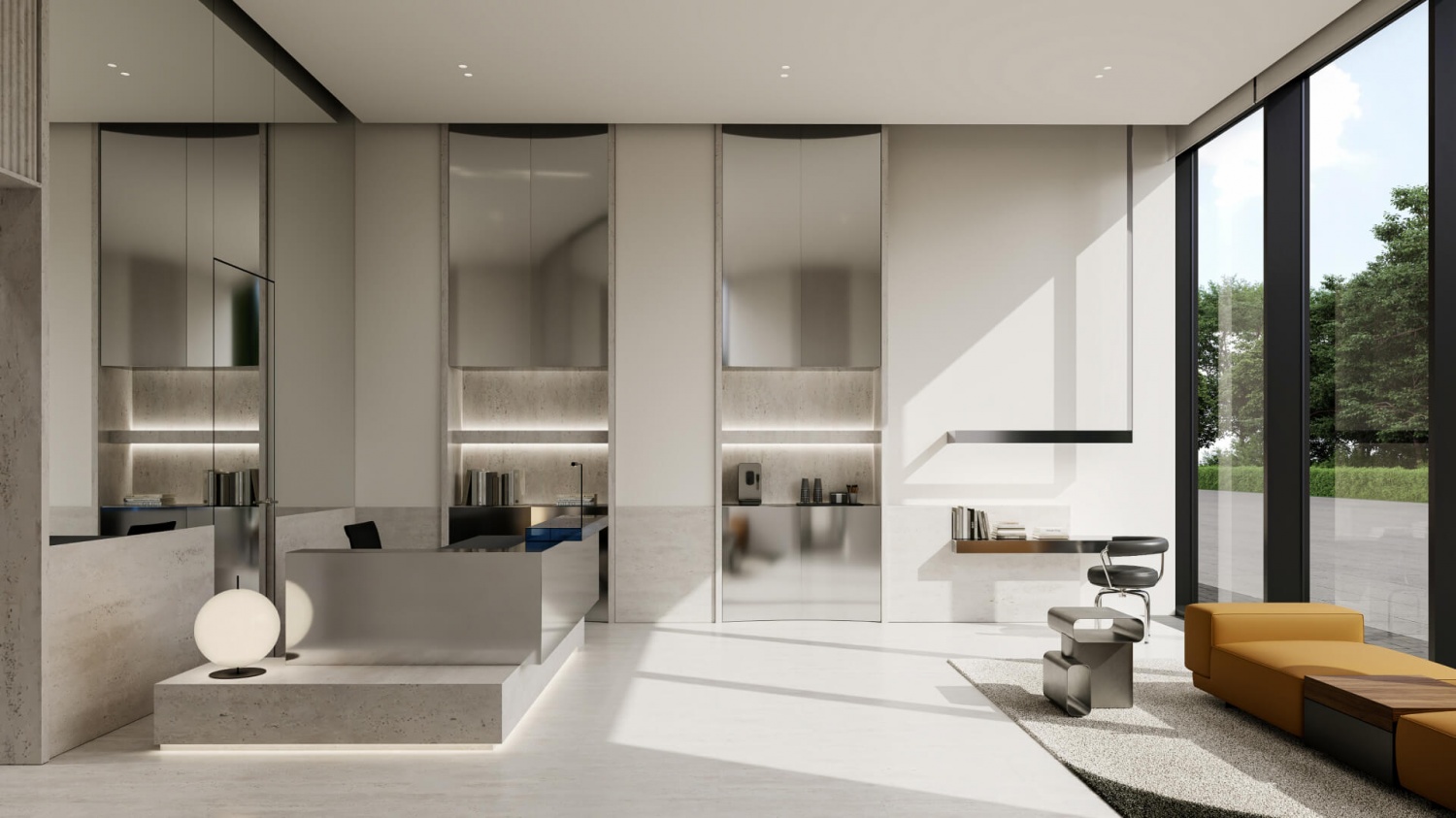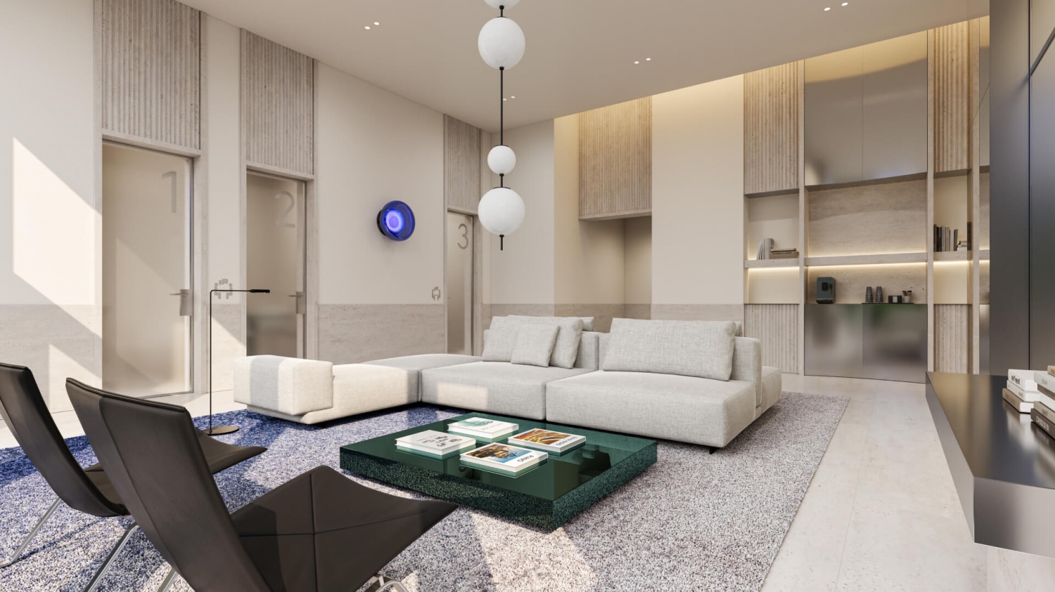 — Приватная территория с “созерцательным” благоустройством: есть фонтан, арт-объект, площадки для тихого отдыха.