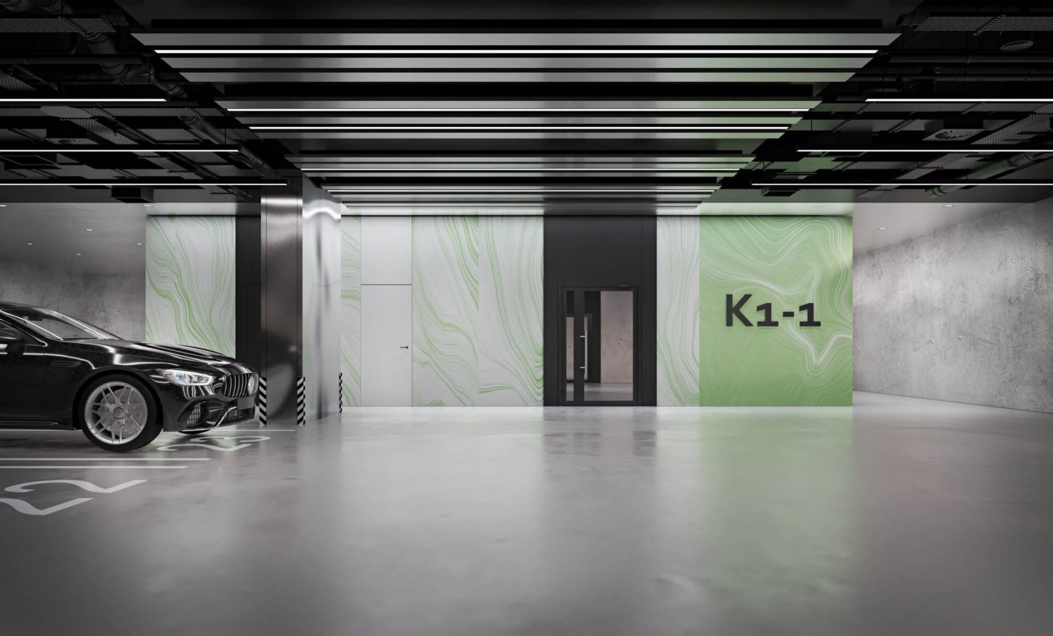 На территории комплекса предусмотрен подземный двухуровневый паркинг с лифтом на жилые этажи. Паркинг для первых двух корпусов рассчитан на 473 машино-места и оборудован системой вентиляции, видеонаблюдением и удобными подъездными путями. Здесь же разместятся 213 кладовых для хранения крупногабаритных и сезонных вещей, 60 мест хранения малых ТС, автомойка и 10 мест для электромобилей.
