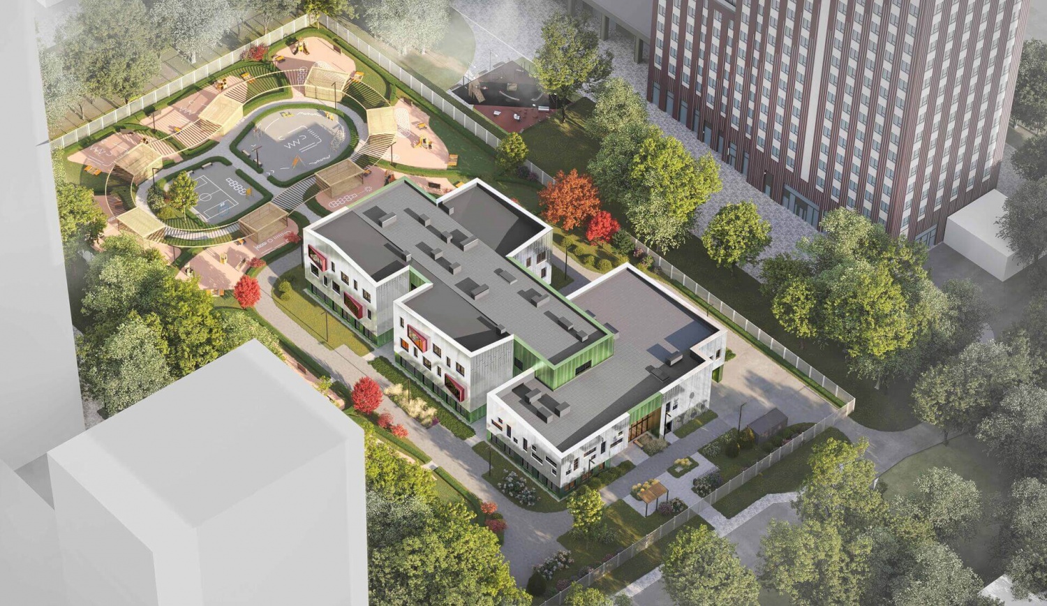 В рамках проекта запланировано строительство 9 корпусов, школы на 500 учащихся и детского сада на 225 мест, которые впоследствии будут переданы городу. В перспективе район пополнится новыми социальными объектами, включая дополнительные детские сады, школы, поликлиники, культурные и деловые центры, гостиницы, магазины и торговые галереи.