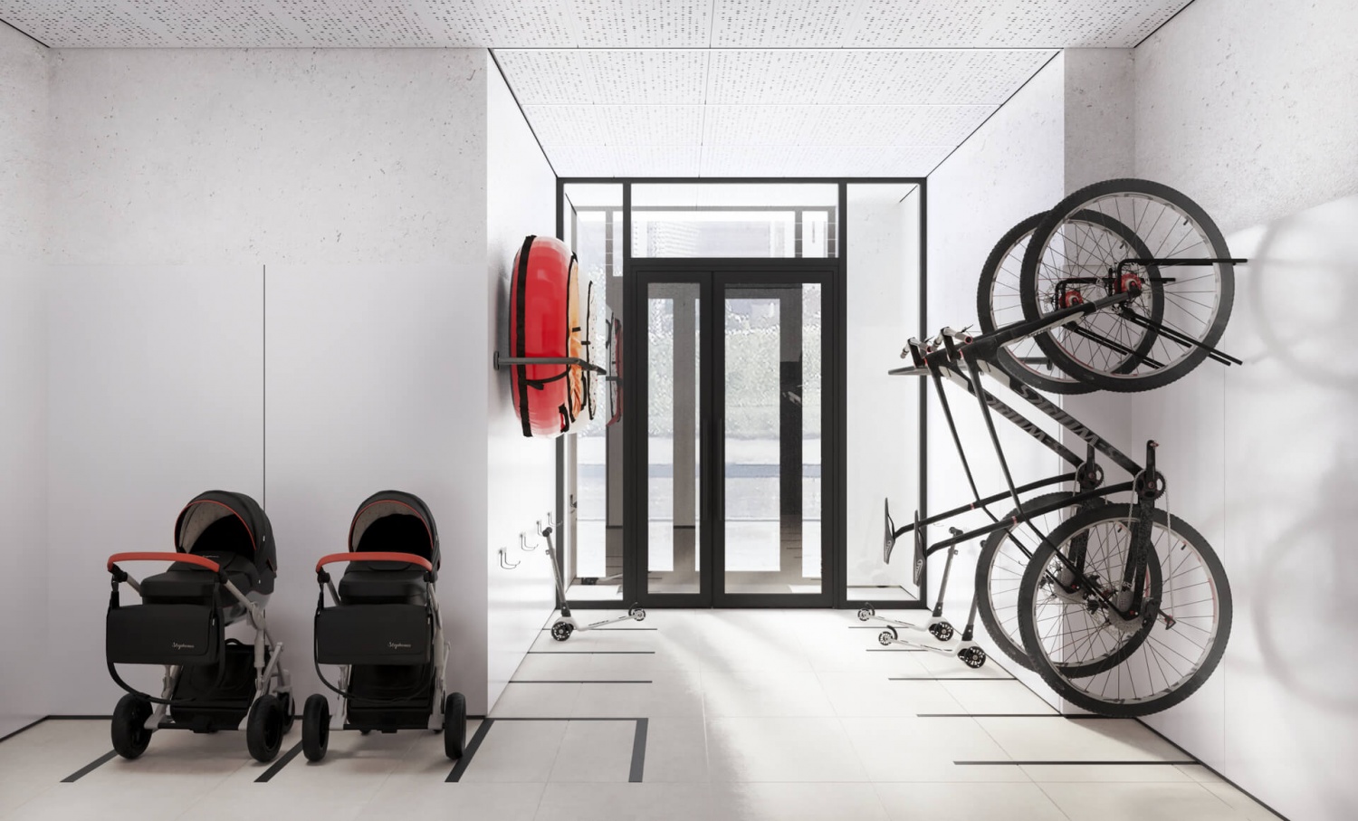 На территории комплекса предусмотрен подземный двухуровневый паркинг с лифтом на жилые этажи. Паркинг для первых двух корпусов рассчитан на 473 машино-места и оборудован системой вентиляции, видеонаблюдением и удобными подъездными путями. Здесь же разместятся 213 кладовых для хранения крупногабаритных и сезонных вещей, 60 мест хранения малых ТС, автомойка и 10 мест для электромобилей.