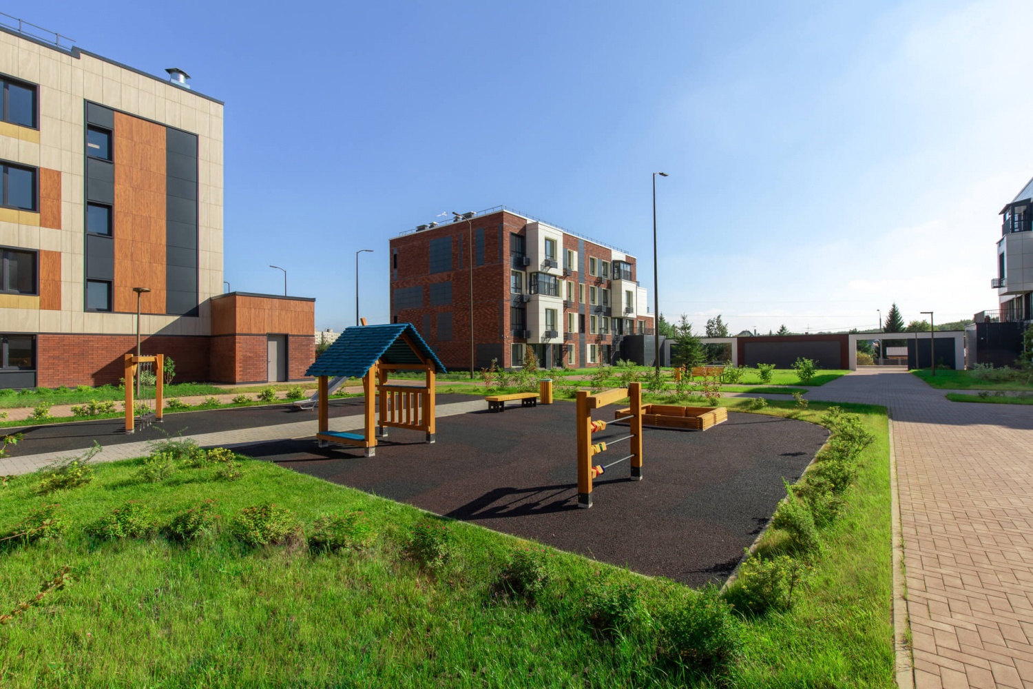 Размеры на любой вкус и бюджет: от студий (26 кв.м.) до четырёхкомнатных квартир (101,9 кв.м.). Благодаря низкой этажности домов 1-й очереди и увеличенным размерам оконных проёмов обеспечивается естественное освещение квартир. В отделке использованы качественные материалы натуральных оттенков. Для любителей свежего воздуха предусмотрены террасы и палисадники, создающие атмосферу загородного дома. Застройщик позаботился и об инфраструктуре: благоустроенная территория с детскими и спортивными площадками; собственные школа, детский сад и автостоянка.