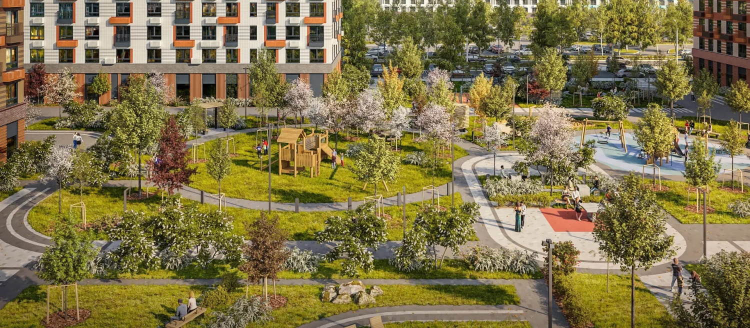 На территории ЖК появятся школы, детские сады, деловой центр, поликлиники, магазины, паркинги, торговый центр. В комплексе уже работают детский сад, магазины, ателье, аптеки, салоны красоты и т.д.