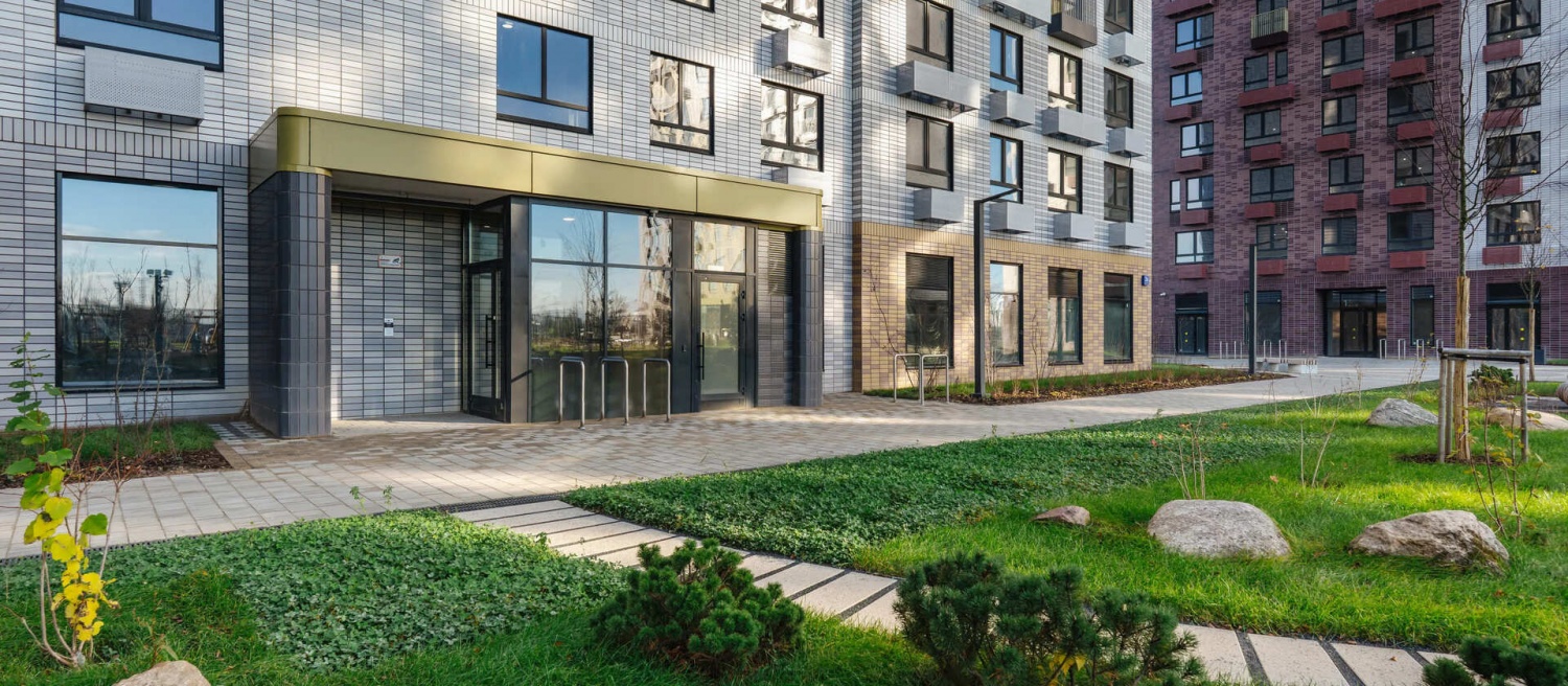 Возле жилого дома будет создан благоустроенный двор, закрытый от автомобилей. Во дворе будут устроены детская и спортивная площадки, сквер для выгула собак, зоны отдыха и велосипедных дорожки. Застройщик также возьмет на себя озеленение территории.
